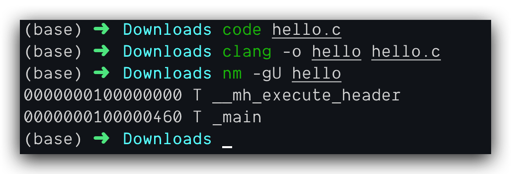 编译后生成的二进制文件中会包含hello和main函数的符号信息。可以使用nm命令来查看二进制文件的符号表:
